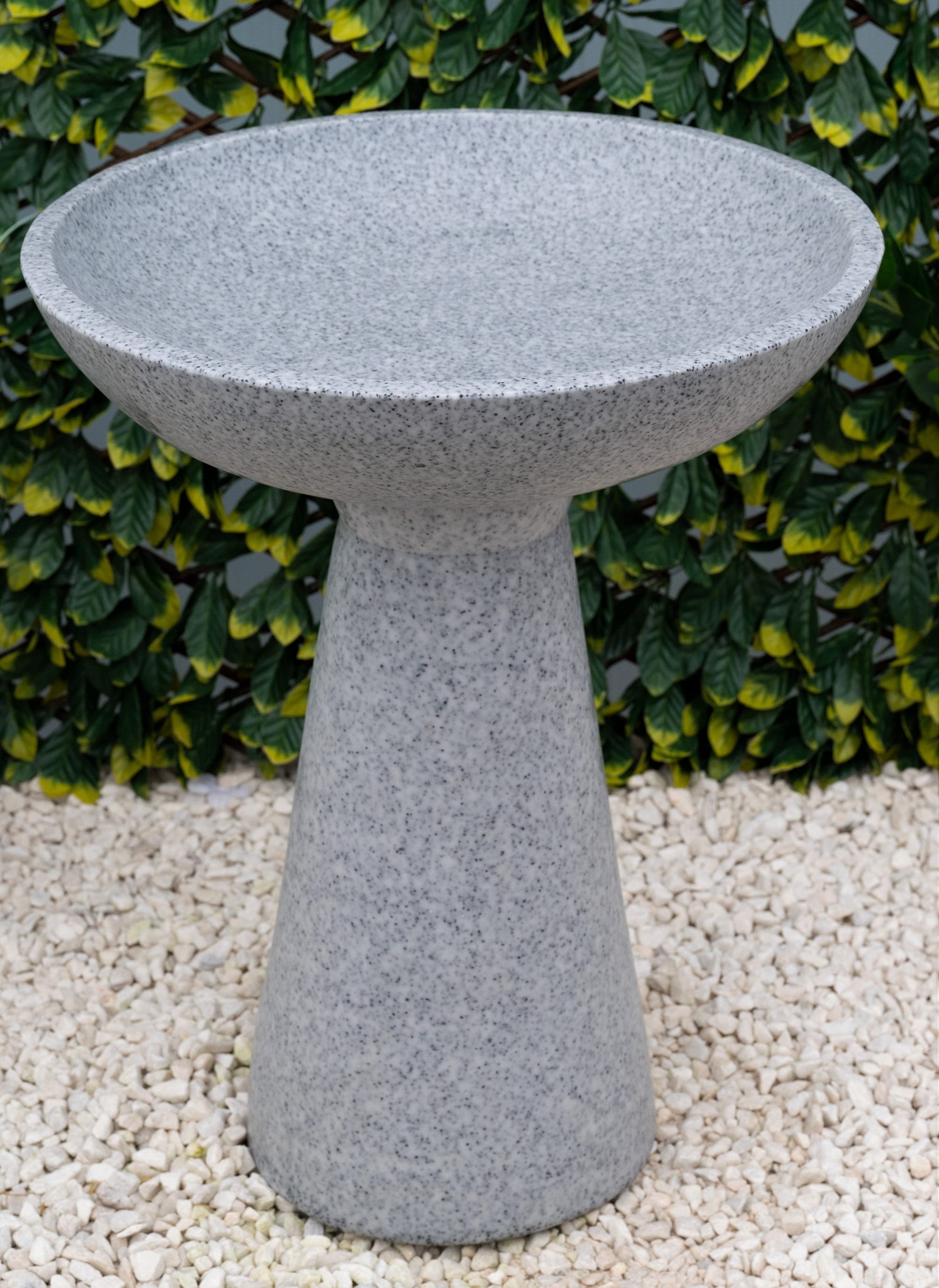 With its smooth bowl and tapered pedestal base, this modern birdbath offers a striking yet understated silhouette that complements both contemporary and classic garden designs. The shallow basin provides an inviting spot for birds to drink and bathe, helping to introduce movement and life throughout the seasons. Crafted from premium grey terrazzo marble, this high-quality piece delivers crisp detailing, excellent stability, and long-lasting durability. Suitable for year-round outdoor display, the Grey Modern Stone Birdbath is an elegant and practical addition to gardens, patios, or balconies.