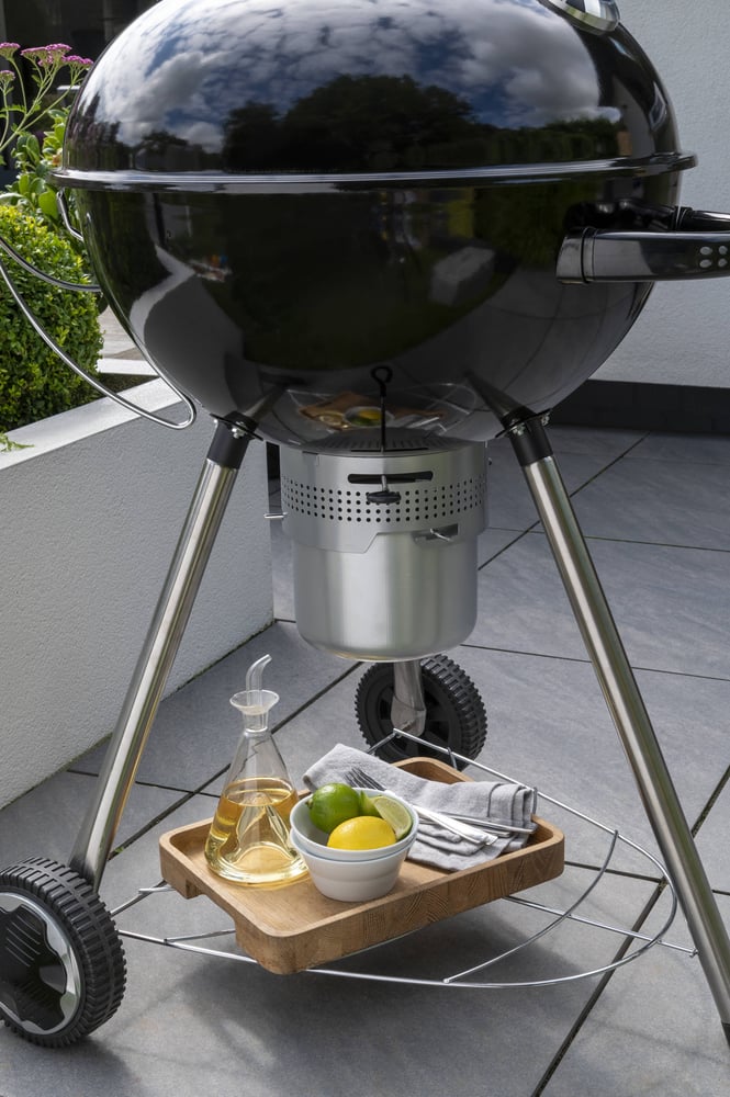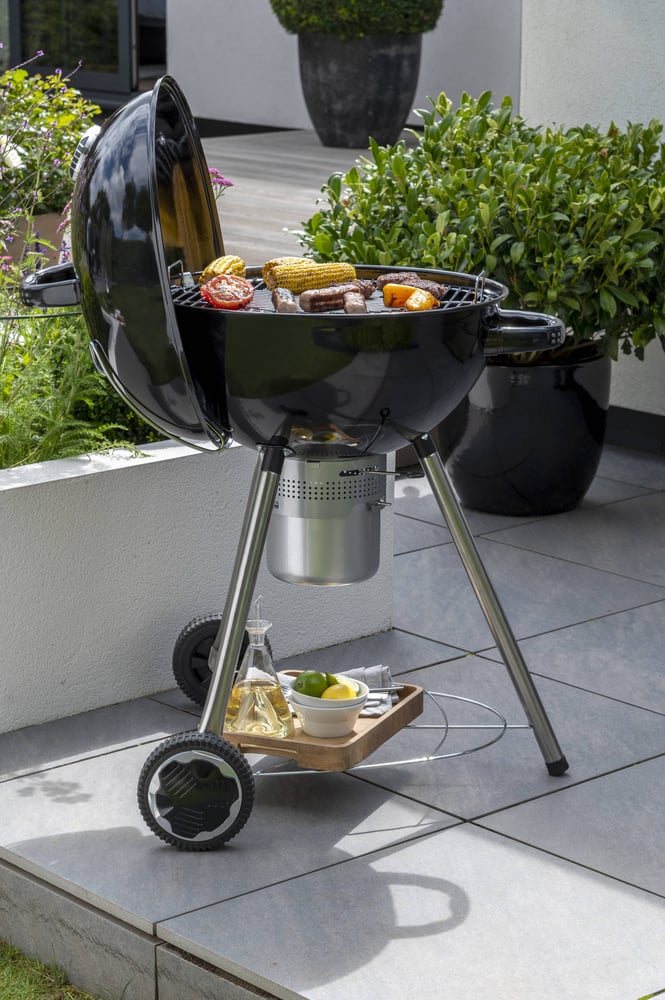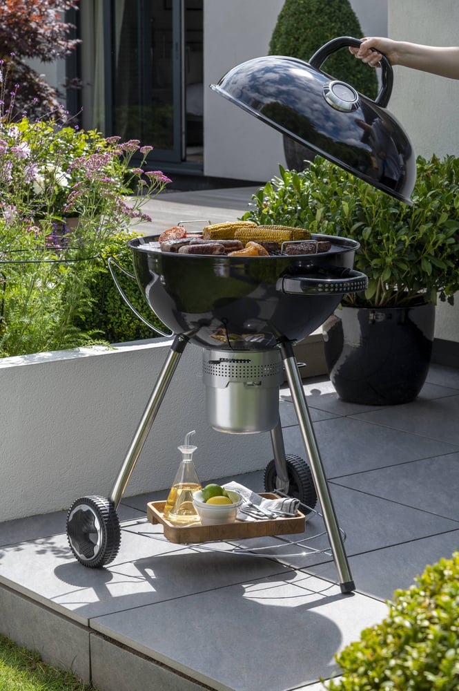 The Norfolk Grills Corus Charcoal Barbecue is made with quality enamel steel on the body and lid, with an XL thermometer feature, as well as ergonomic handles. The ash catcher sits underneath along with a handy storage shelf. Practicality is easy thanks to the lid holder, perfect for a quick solution to store your lid whilst flipping your delicious burgers, sausages and more!