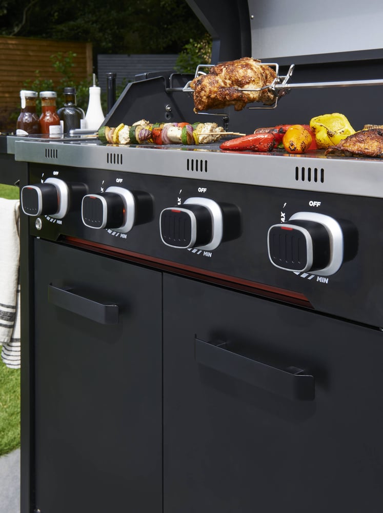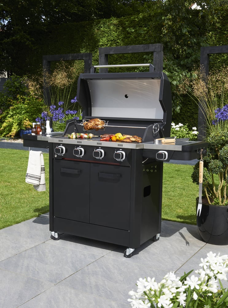 The Norfolk Grills Infinity 4 Burner Gas Barbecue Barbecue is the perfect addition to your outdoor kitchen. With four 3.3kw burners, it provides plenty of cooking power, and the added luxury touches, like red LED lighting on the controls, make it a standout piece.