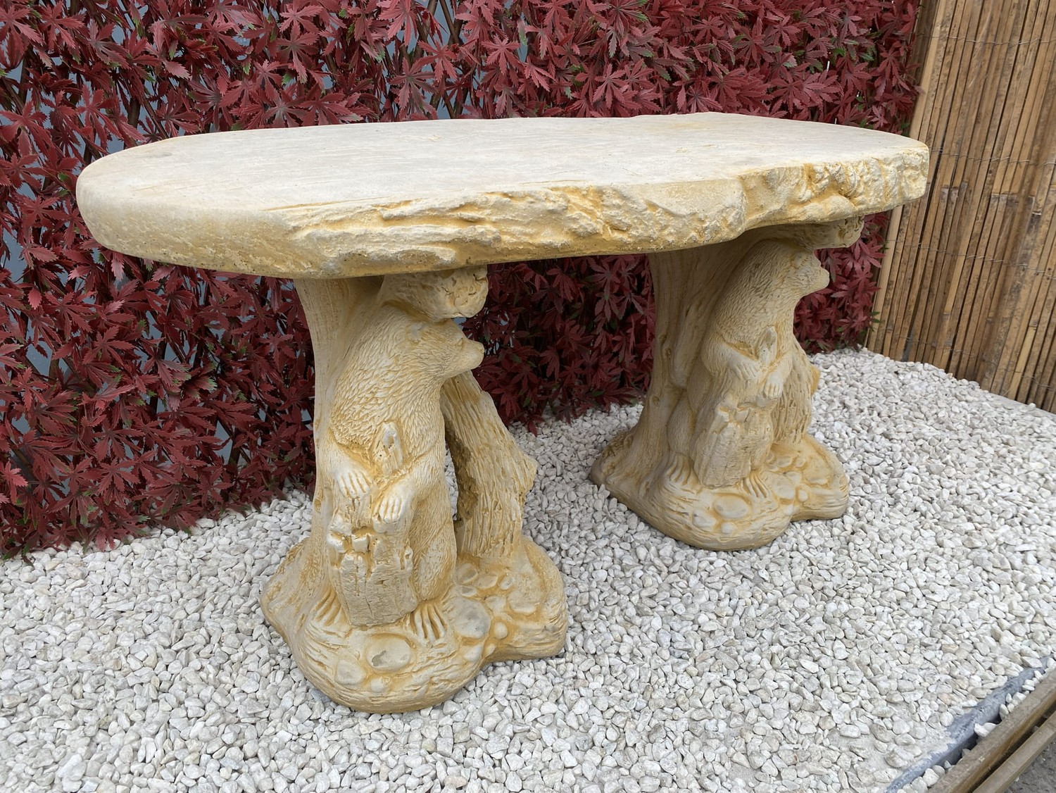 Beautifully crafted with a woodland theme, this enchanting bench features intricately detailed otter figures forming the supporting legs, combined with a softly contoured, natural-look seat that enhances its forest-inspired charm. Each Otter Stone Garden Bench is expertly hand finished to achieve a crisp, refined appearance while maintaining the warmth and personality of its design. Built from robust stone to withstand the elements, this bench offers both lasting durability and timeless decorative appeal, making it a captivating focal feature in gardens of all sizes.