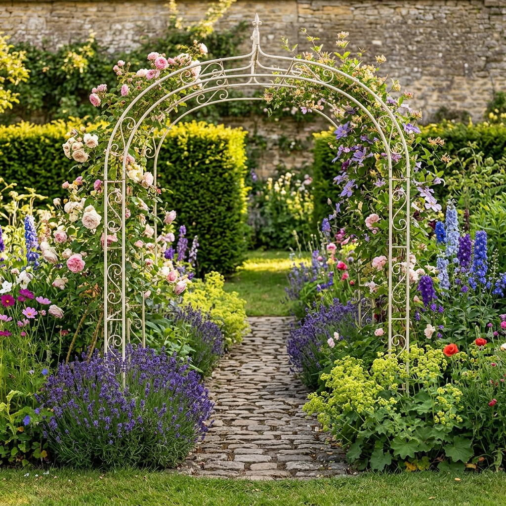 Train roses, clematis, jasmine, or wisteria up the frame for a living floral tunnel. Over one or two seasons, climbers will weave through the bars and create a fragrant, shaded walkway. The cream finish complements both cottage gardens and more formal designs.