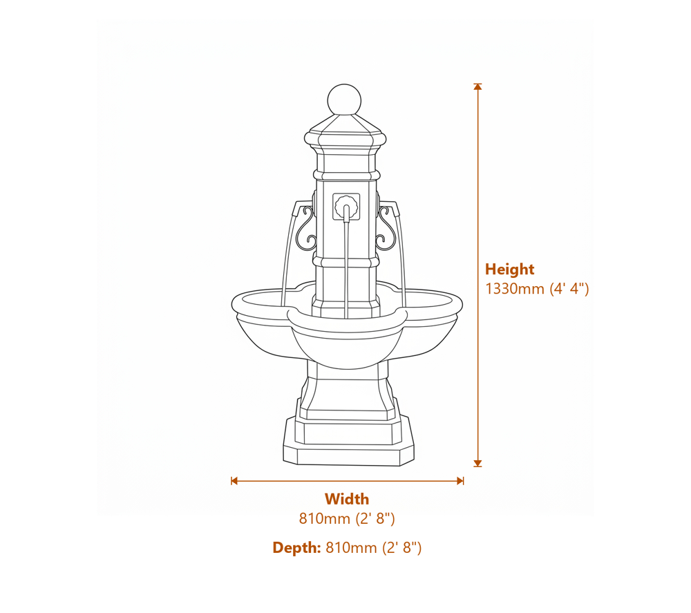Built from composite concrete, the Piazza has a realistic stone-effect finish. It weighs enough to feel substantial without being impossible to move. The antiqued detailing gives it the look of a feature that has stood in an English courtyard for decades.