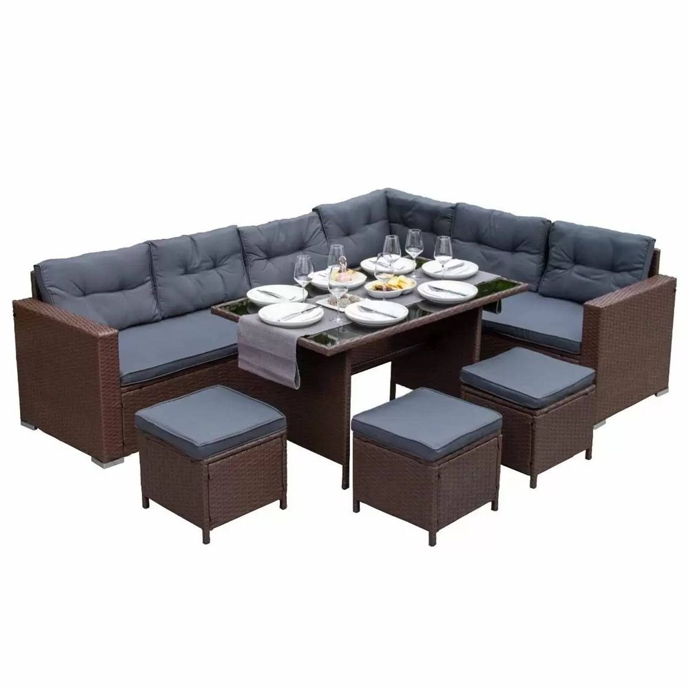 Radiant 9 Seat Rattan Corner Suite Brown