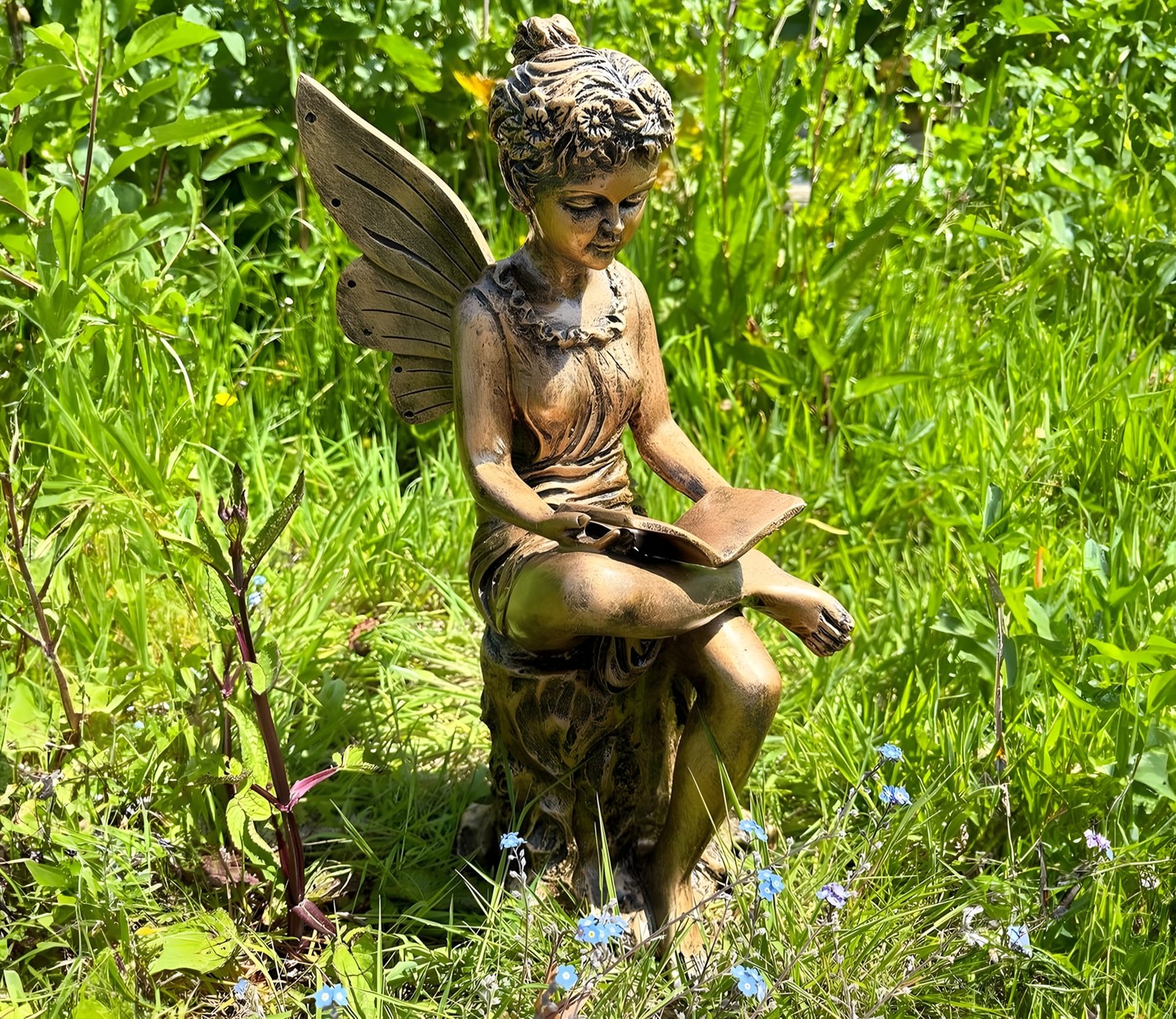 The Reading Fairy Garden Ornament in Bronze is a sophisticated 57cm tall sculpture designed to inspire a sense of quiet contemplation and literary charm, whether nestled within a woodland garden border or displayed as a gallery-grade interior piece.