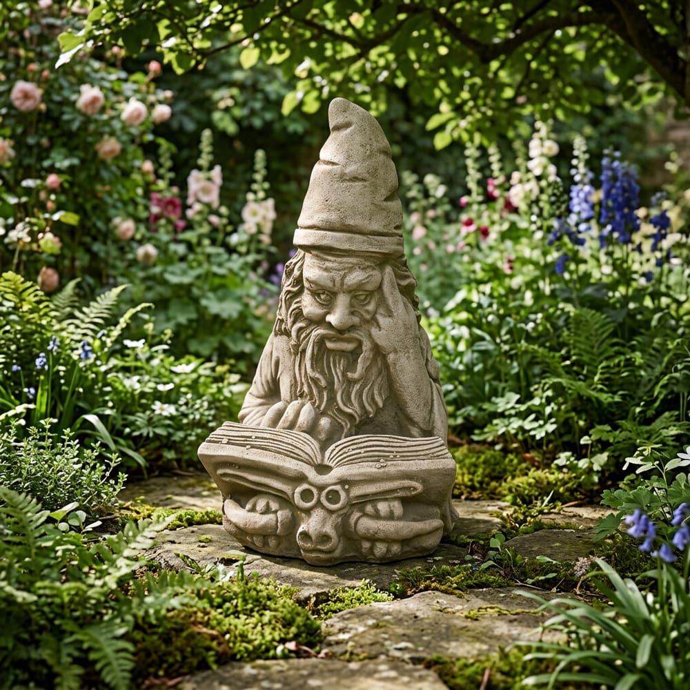 This Reading Wizard stone garden ornament captures a bearded sorcerer deep in his spell book. At 28cm tall, he fits perfectly among rockery plants and shaded borders.