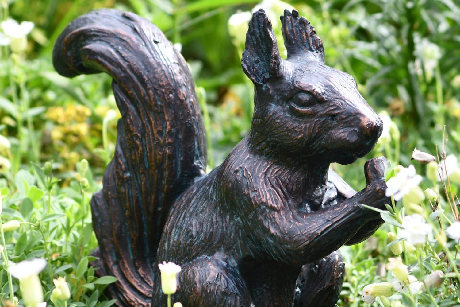The Red Squirrel Metal Garden Ornament brings playful woodland charm to any outdoor space, beautifully crafted from durable aluminium with a striking bronze & verde finish.