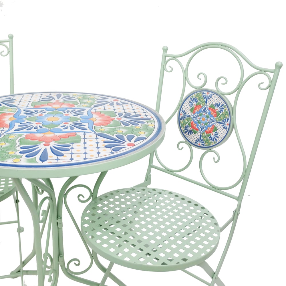 Rhone Metal Bistro Set with Floral Mosaic Pattern