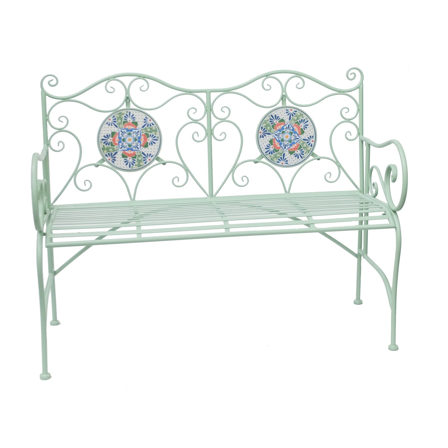 Rhone Metal Garden Bench with Floral Mosaic Pattern