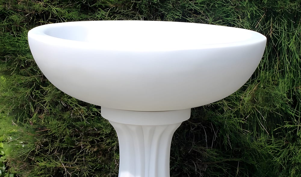 Cast from a crushed marble and resin blend, this bird bath has a bright white finish that suits both modern and traditional gardens. The hand-finished ripple texture on the column adds visual interest without overwhelming the space. At 440mm wide, the smooth basin holds enough water for several birds at once.