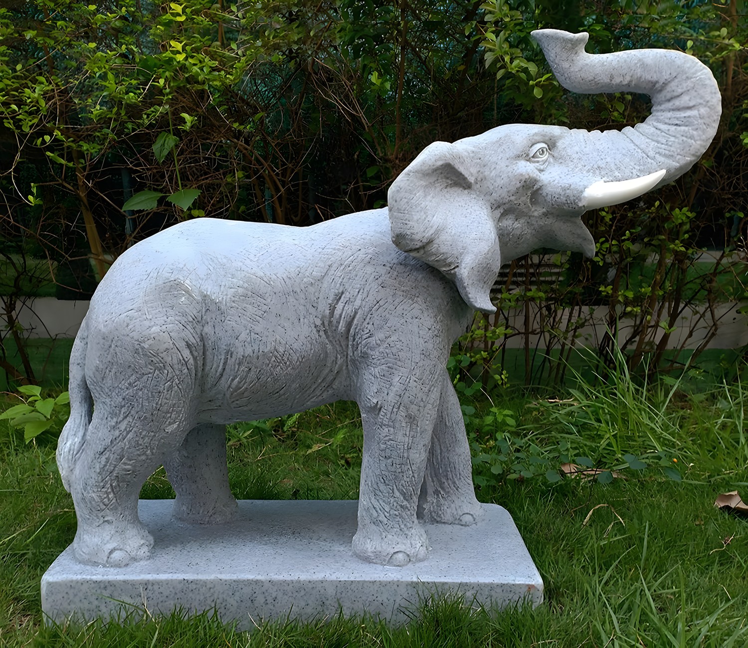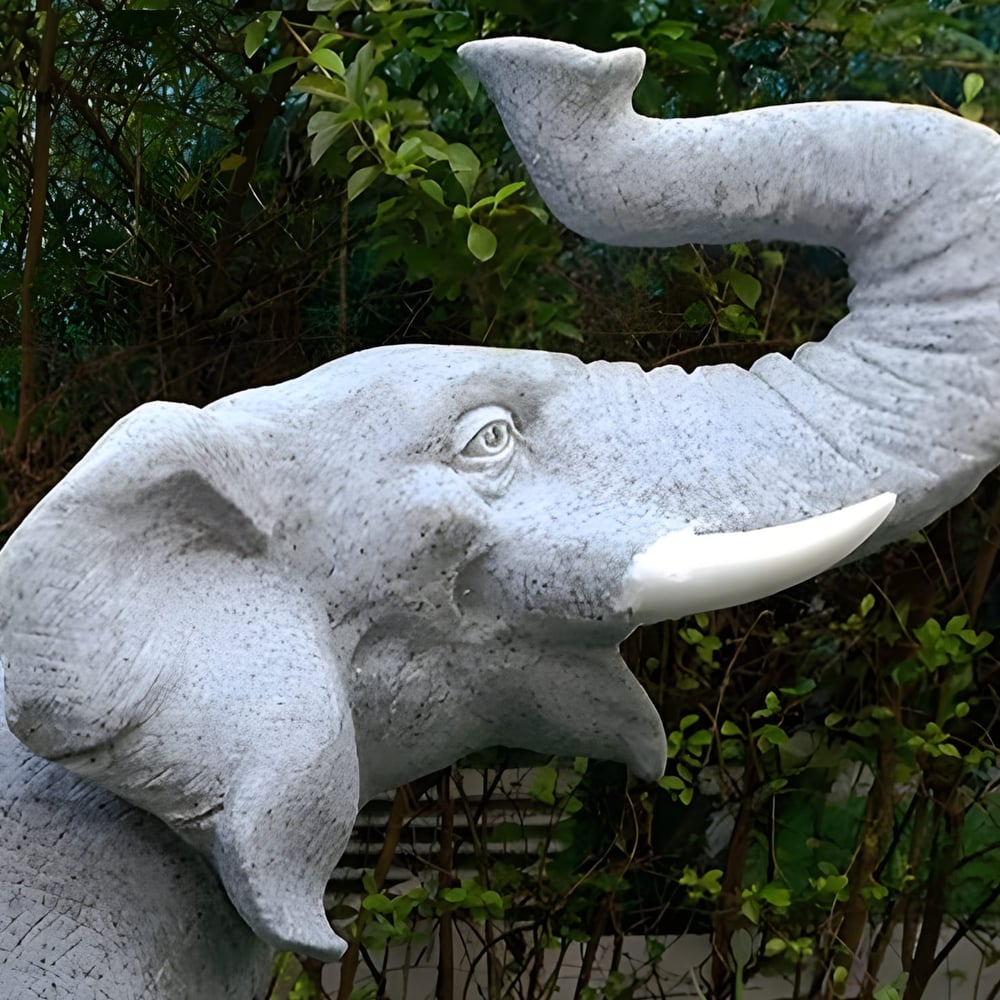 Hand-finished, this piece is cast from a premium fusion of crushed marble and resin to achieve a dense, stone-like quality with a lustrous Granite sheen. The Roaring Elephant Garden Statue in Granite features an uplifted trunk and detailed ear texturing, as seen in the provided imagery, and is fully frost-resistant to ensure it maintains its magnificent, gallery-grade appearance through the changing seasons with minimal maintenance.