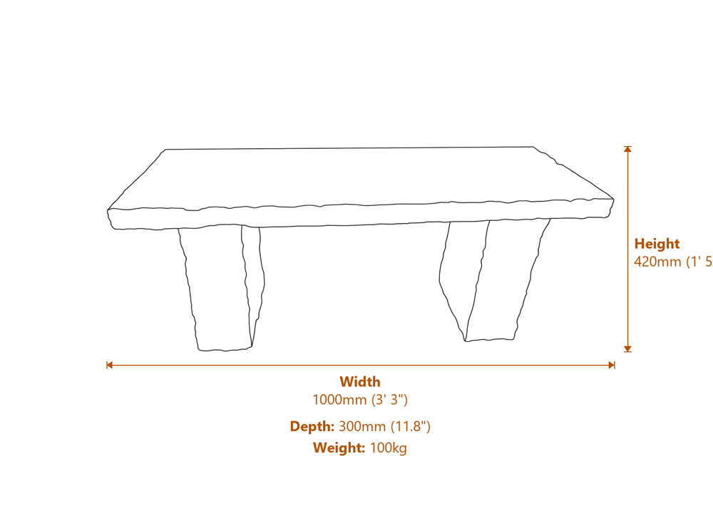 At 420mm high and 300mm deep, it sits at a comfortable height for relaxed seating. Place it beneath a tree, alongside a garden path, or as a focal point on a paved terrace. This is a bench built to last for decades, not seasons.