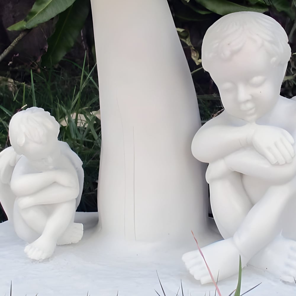 Standing at 48cm, the Sheltering Cherubs Garden Ornament is a charming work of celestial art designed to bring a touch of magical storytelling and peaceful sanctuary to your flower beds, garden pathways, or interior nurseries.