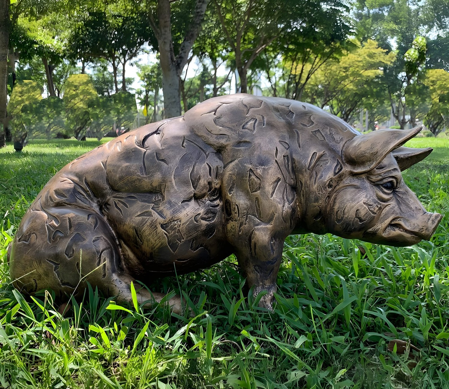 Sitting Pig Garden Ornament in Bronze