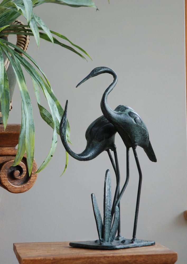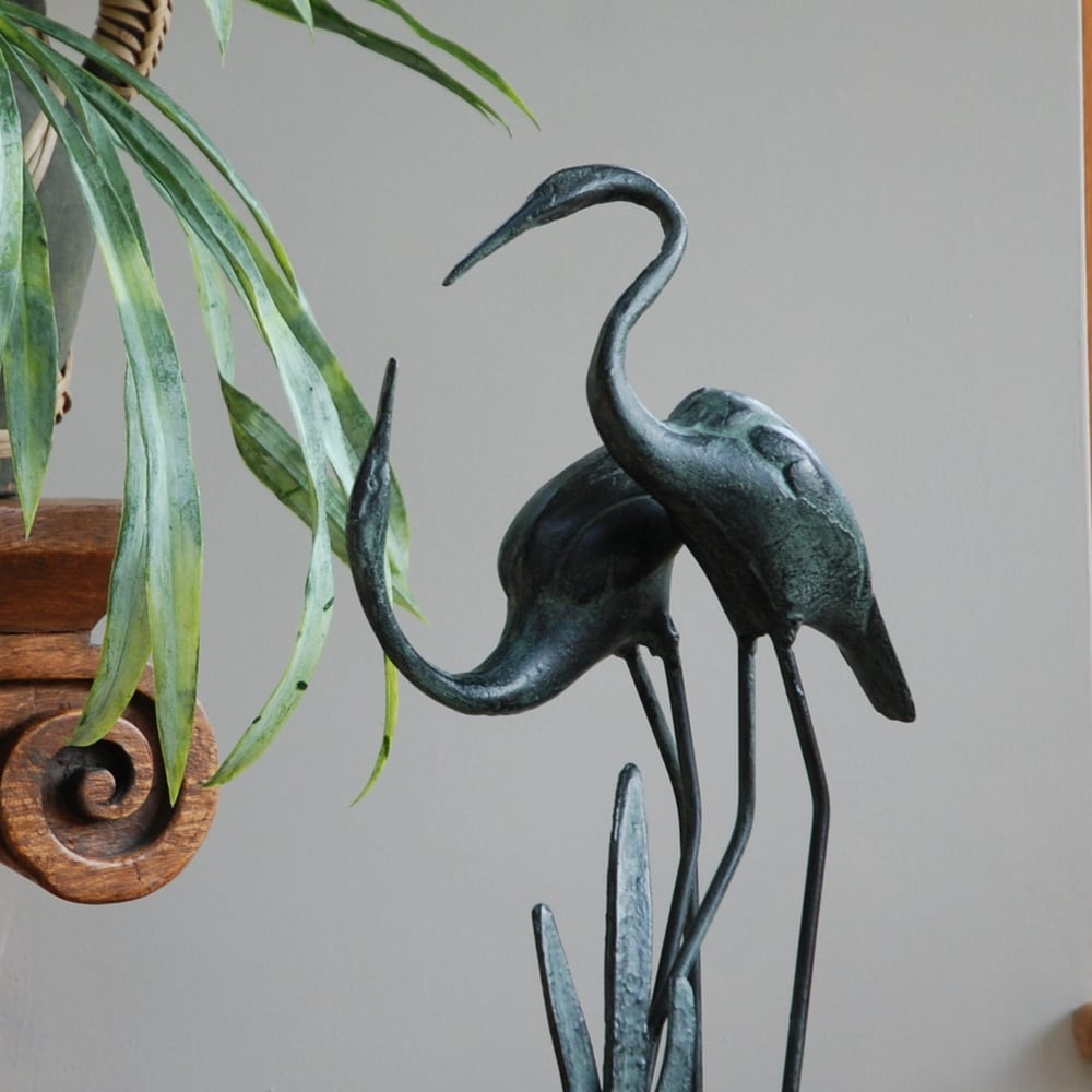 Crafted from sturdy iron with a refined aged verde finish, the set of Small Love Cranes Metal Garden Statues weighs 2.48kg and is ideal for enhancing pond edges, patios, pathways, or landscaped borders with a touch of tranquil elegance.