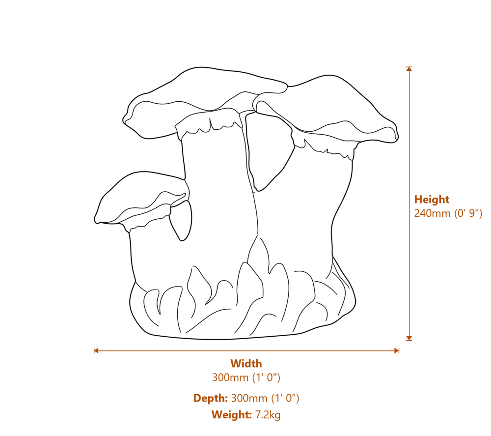 Hand-finished in a warm sandstone tone, the Small Mushroom Family features a cluster of toadstools with crisp surface detail. At 24cm tall and weighing 7.2kg, it sits firmly on soil, gravel, or stone without tipping. The cast stone construction is fully frost-proof. Leave it outside all year without worry.