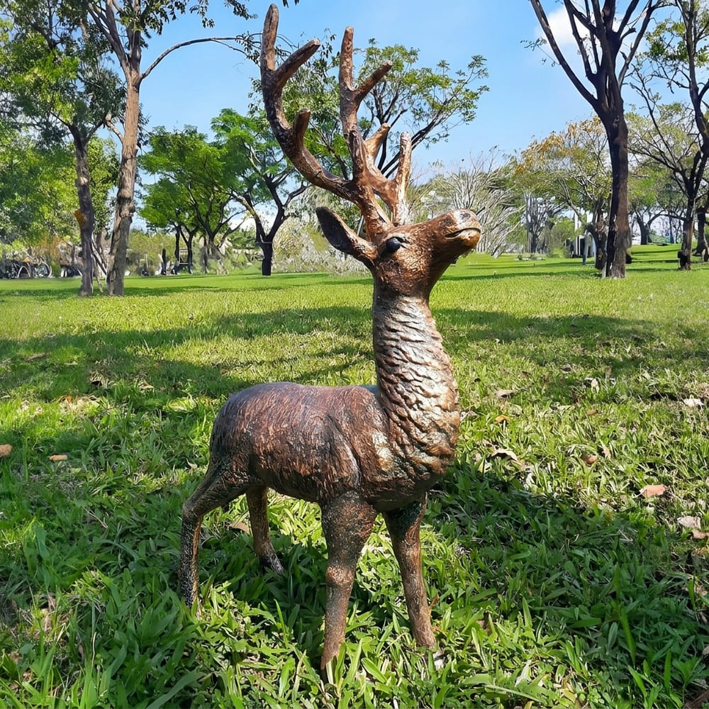 Hand-finished bronze stag ornament in crushed marble and resin, standing 880mm tall for garden or indoor display