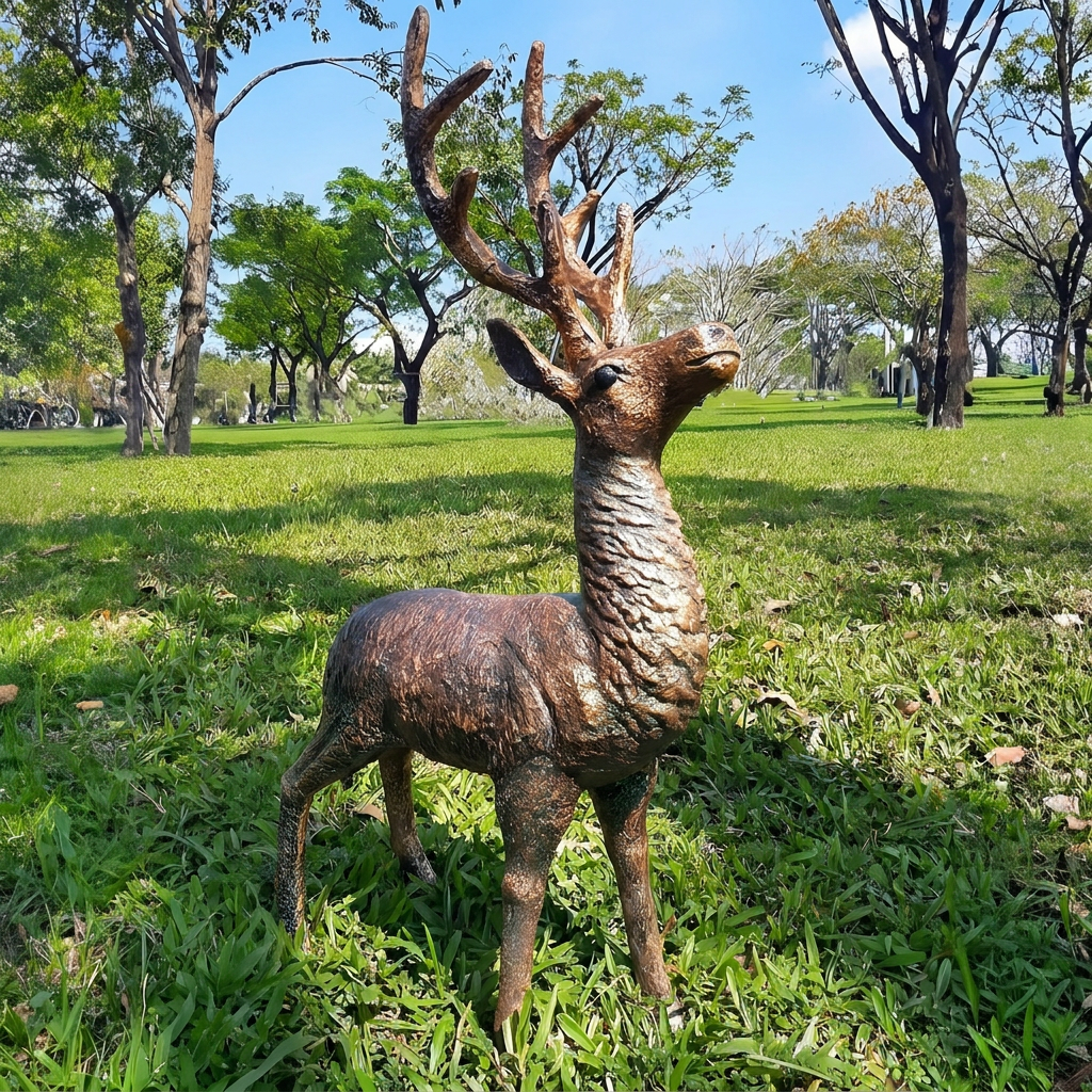 Standing 880mm tall with a proud antlered silhouette, this Small Standing Stag Garden Ornament in Bronze makes a striking focal point for any garden entrance, patio, or woodland border.
