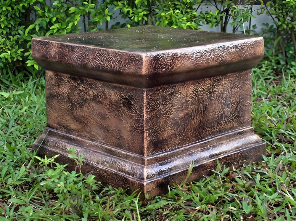 The Small Victorian Plinth in Bronze stands 200mm tall and provides a handsome display base for statues, urns, and planters. Cast from a crushed marble and resin blend, it has the cold-to-the-touch weight of genuine Italian stone. Priced at £135, it arrives with free UK delivery.