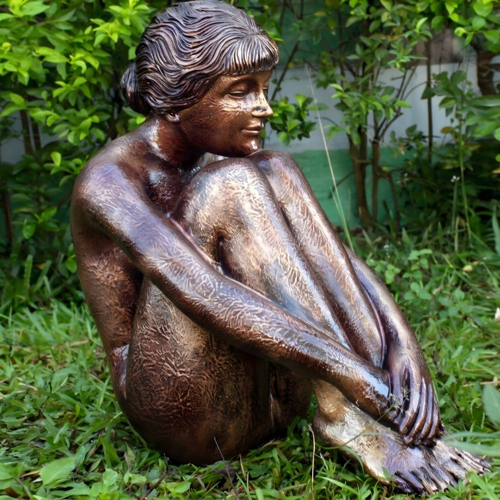 Handmade 55cm bronze garden statue in crushed marble and resin with frost-proof finish