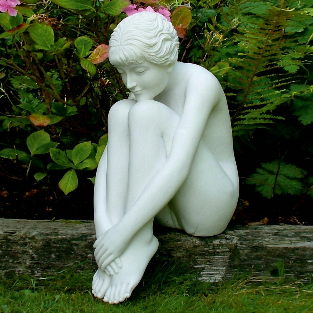 Handmade 55cm crushed marble and resin statue with a frost-proof pure white alabaster finish