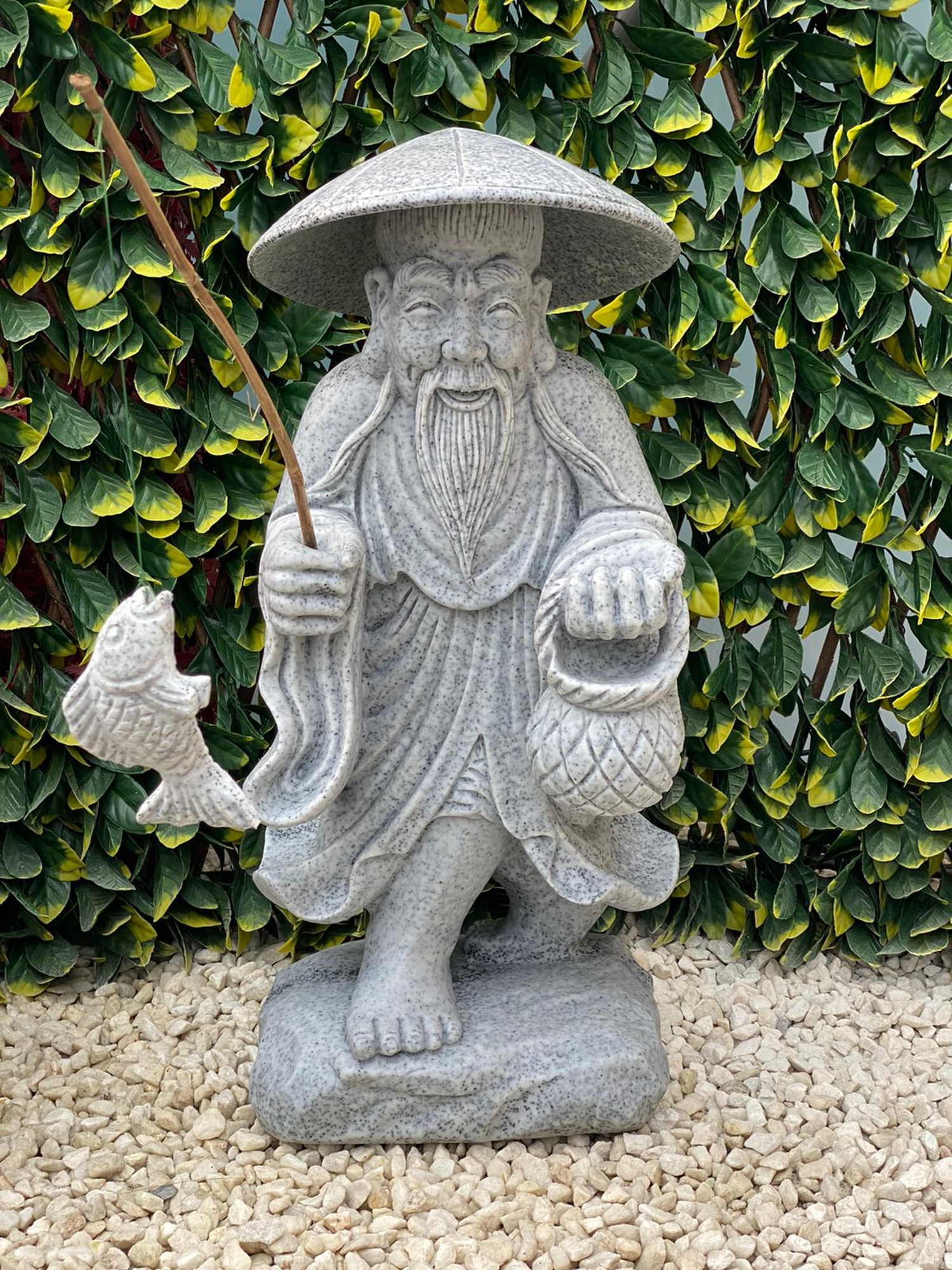 Inspired by traditional Chinese figures, this Grey Standing Fisherman Garden Ornament is beautifully crafted to capture a calm, composed presence through finely sculpted detail and balanced proportions. Made from premium grey terrazzo marble, this high-quality reproduction faithfully reflects the original artistic vision with crisp definition and a refined finish. Strong, durable, and suitable for year-round display, it offers a distinctive and elegant focal point that complements both traditional and contemporary settings.