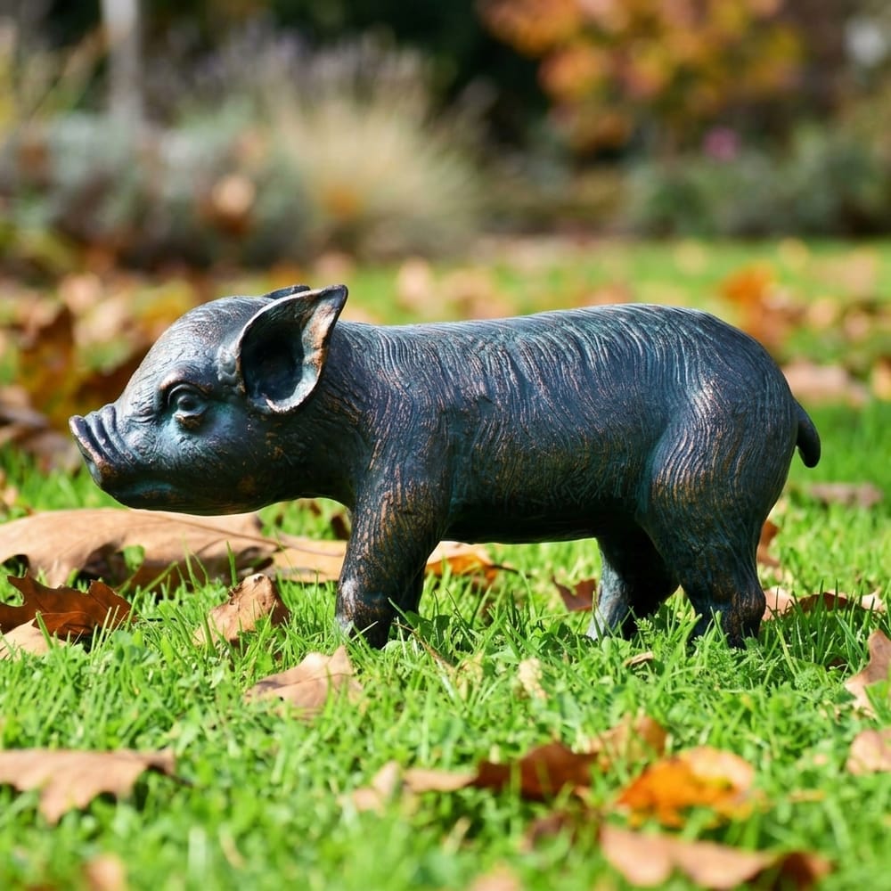 This standing piglet captures real farmyard character in solid aluminium. Hand-finished in aged copper verde for a natural, weathered look.