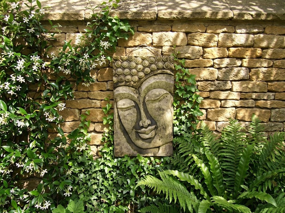 The Stone Buddha Relief Wall Plaque brings a peaceful focal point to any garden wall, balcony, or courtyard at just £149.