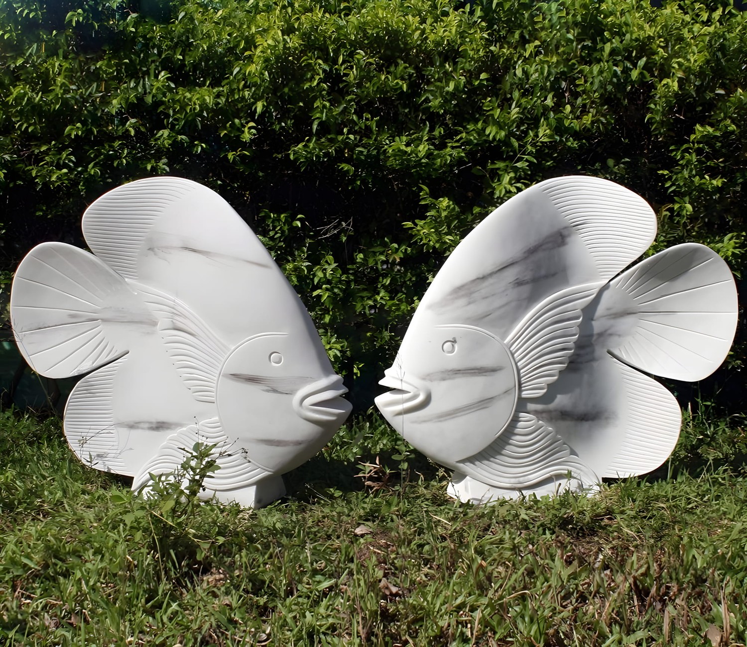 Stylised Fish Garden Ornaments in Marble