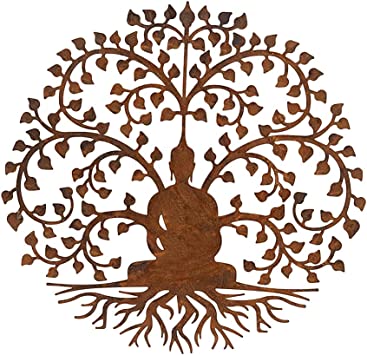 The Tree of Life Buddha Decorative Wall Panel is a beautifully crafted metal artwork, symbolizing enlightenment with a serene Buddha figure under a lush Bodhi tree.