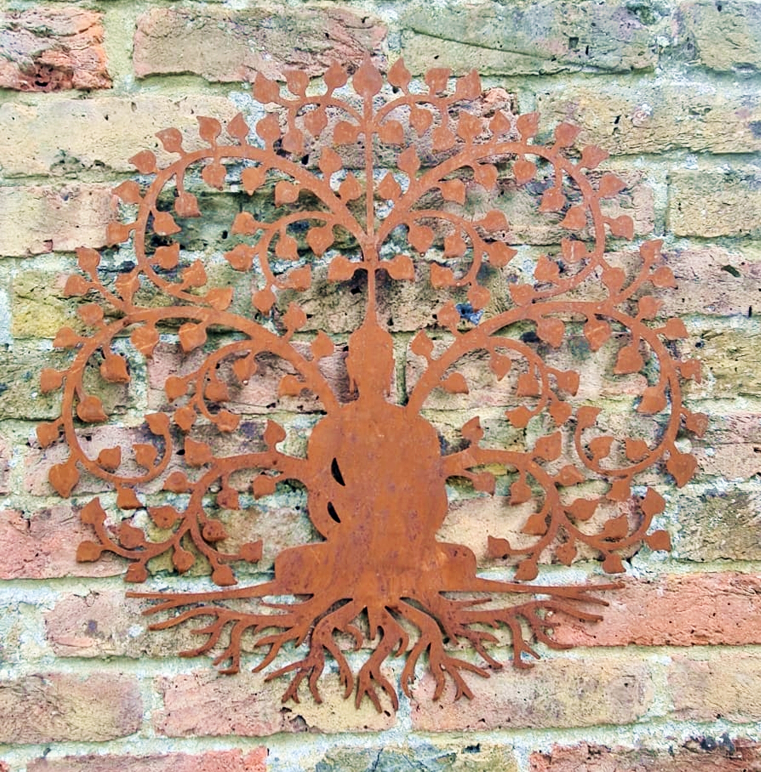 This Tree of Life Buddha Garden Art is more than just a decorative piece, it is a symbol of peace, growth, and natural beauty, ideal for creating a serene and visually captivating atmosphere in any setting. Measuring approximately 60cm in diameter, this decorative wall panel is made from sheet steel and has a natural rustic patina, making it a meaningful and striking addition to any garden or indoor space.