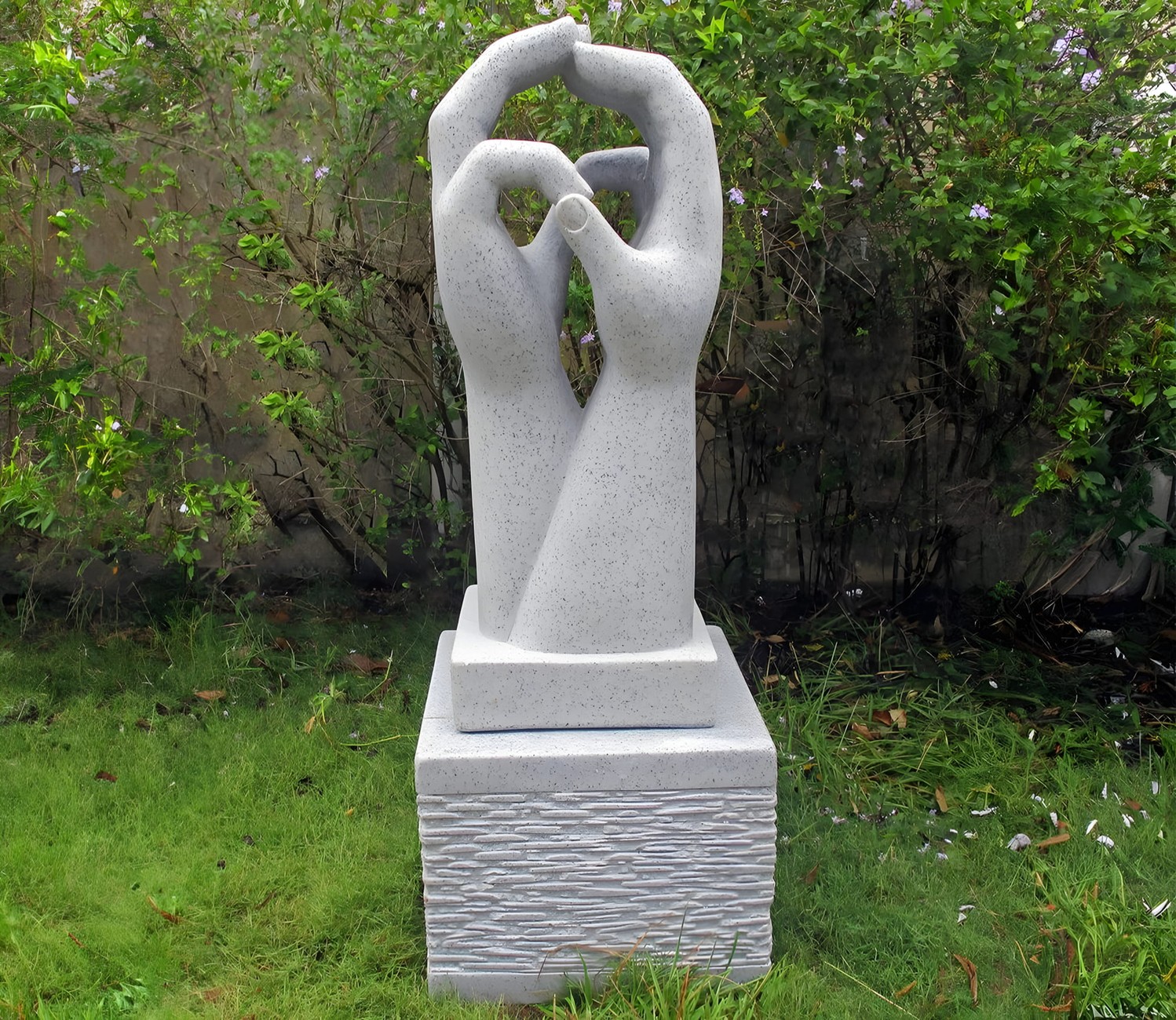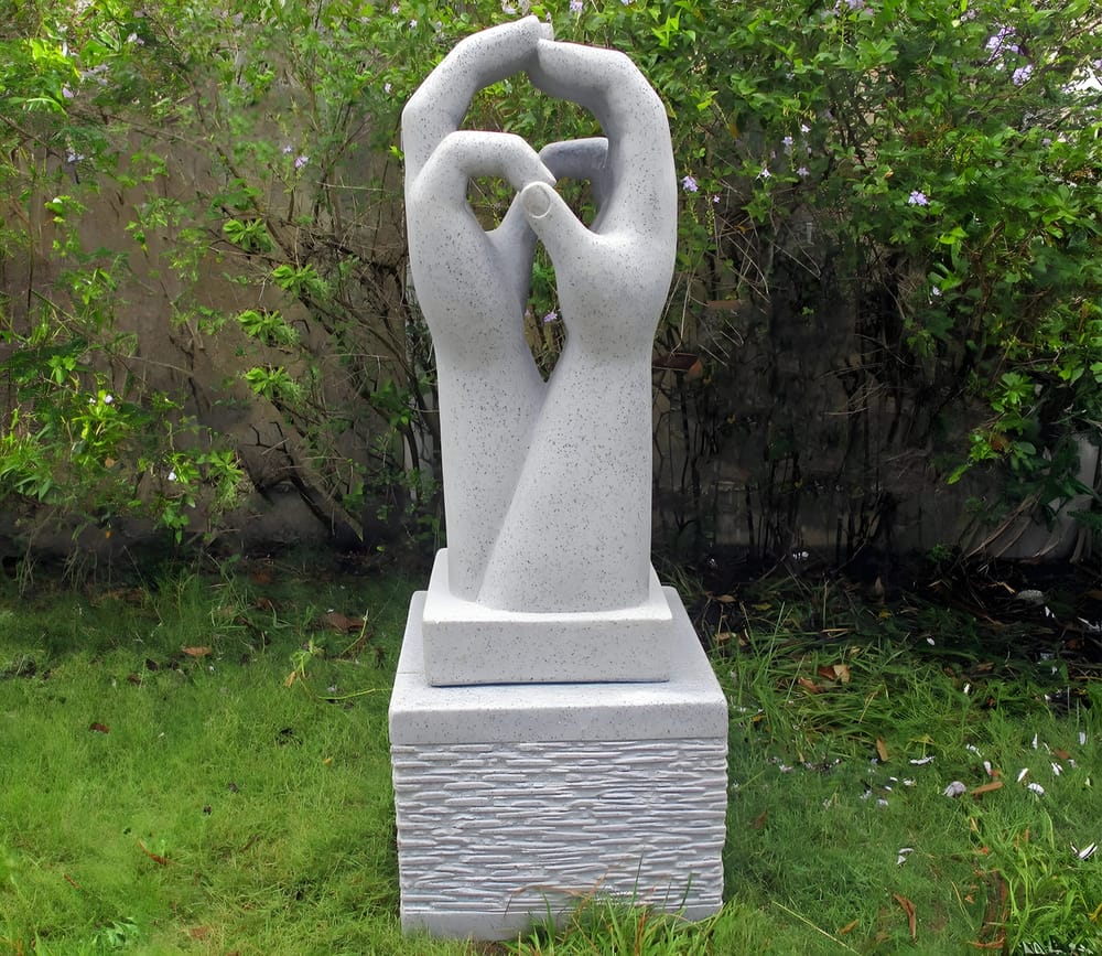 The Two Hands Garden Statue in Granite stands 120cm tall. It makes a striking focal point in any garden setting.
