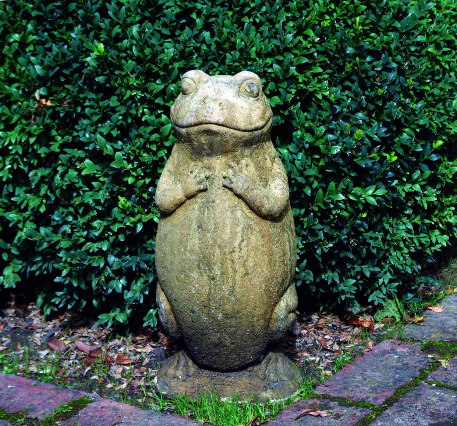 The Upright Frog Statue has a cheeky little smile to lift the spririts in your garden.