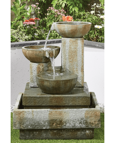 The Weathered Bowls Stone Water Feature has a unique multi tiered design that would give a real rustic look to your garden.