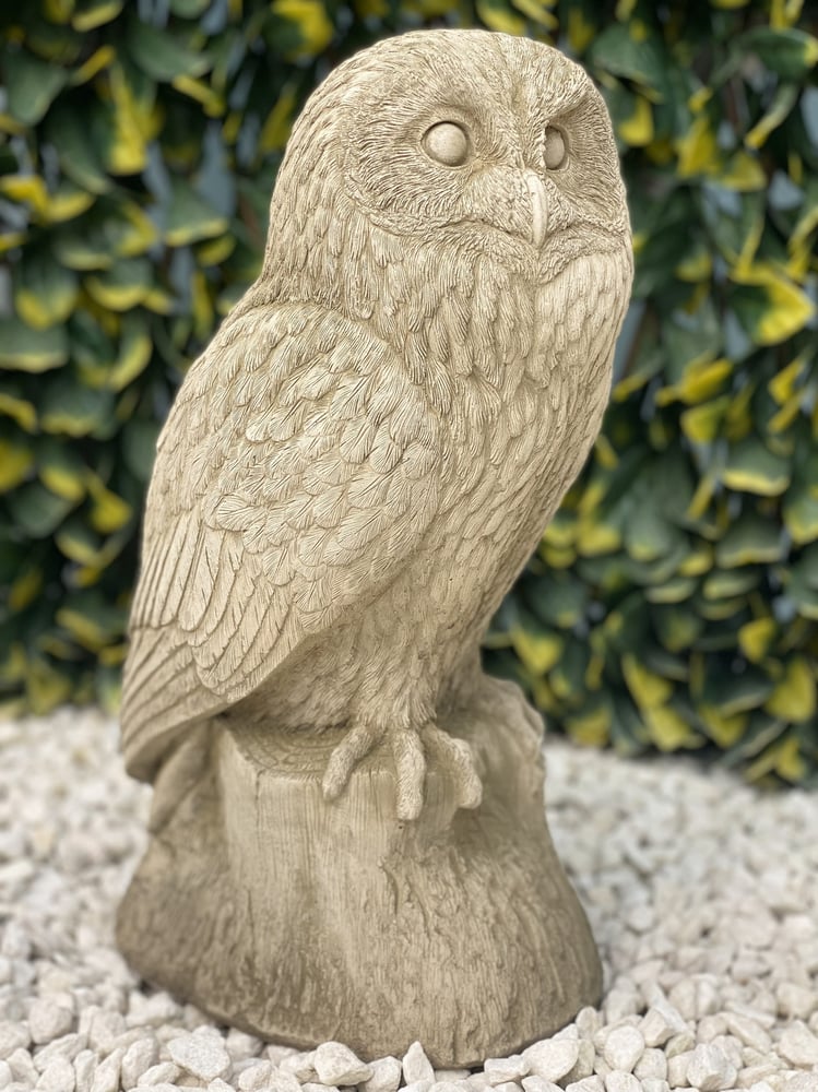 Expertly crafted from high-quality cast stone, this charming and realistic sculpture captures the owlâs calm presence, finely detailed plumage, and watchful gaze. Finished in the subtle Stone wash, the ornament carries gentle green undertones that allow it to blend beautifully into its surroundings. Whether nestled among flowerbeds, placed beneath trees, or displayed as a centrepiece feature, this Wise Barn Owl Garden Statue in Stone finish creates a timeless focal point and will continue to enhance your garden for years, developing a soft natural patina that adds depth and charm with age.