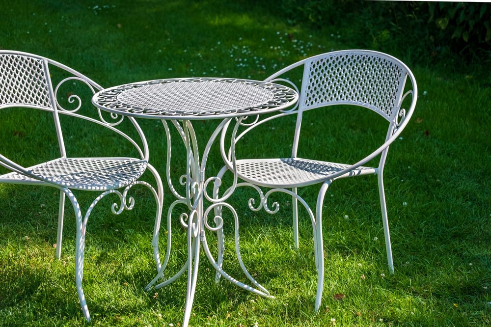 Elevate your outdoor space with the Wiswell Antiqued White Metal Bistro Set - the perfect blend of elegance and durability for timeless garden charm.