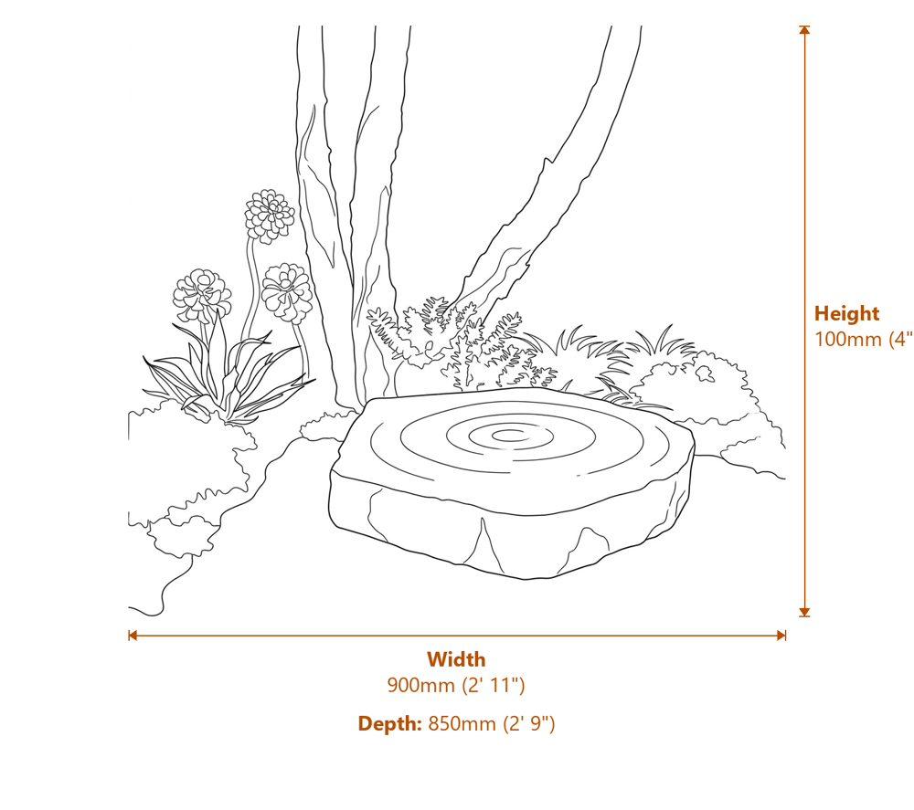At 900mm wide and 850mm deep, this is one of the largest single-slab water features available. The 100mm-high hexagonal slab sits on a sturdy plinth above a hidden reservoir. Everything you need is included: the pump, LED light, plinth and reservoir tank.